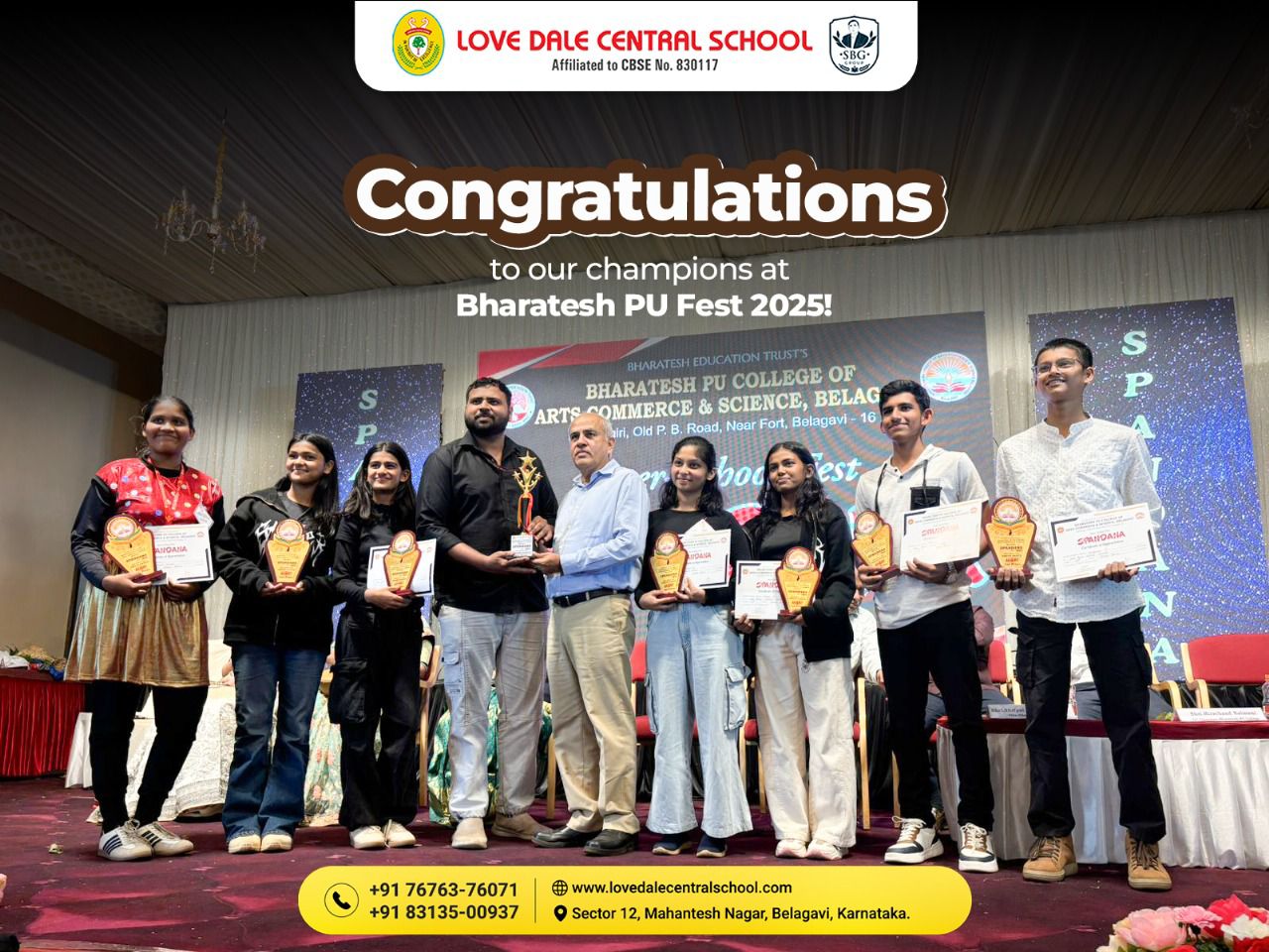 Love Dale Central School is delighted to celebrate the remarkable achievements of our talented students at the Bharatesh PU College Fest held on 17th and 18th November 2025.