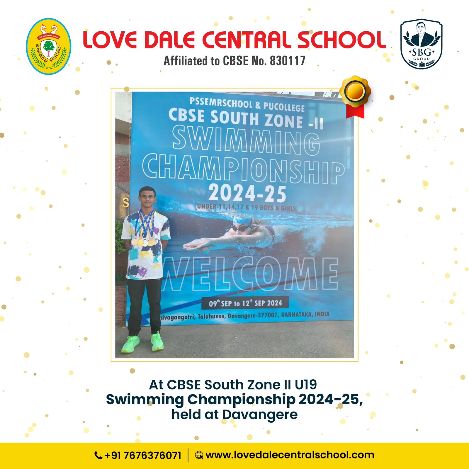 Congratulations to Anish Kore, the pride of Love Dale Central School, for his stellar performance at the CBSE South Zone-II U-19 Swimming Championship 2024-25!
